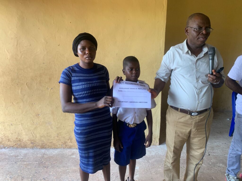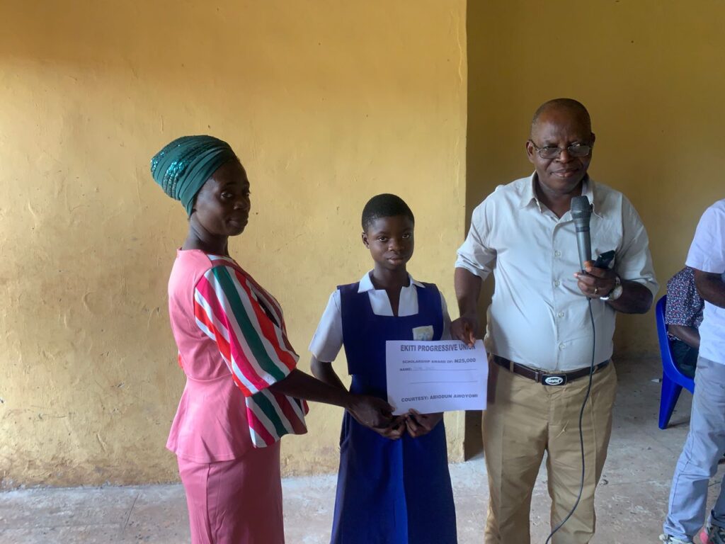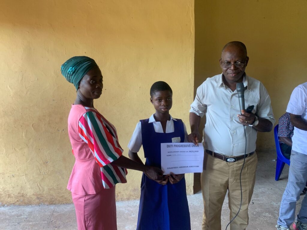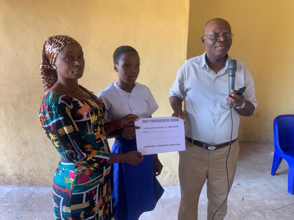 Mr. and Mrs. Abiodun Awoyomi, on behalf of the Ekiti Progressive Union (EPU), Dallas, awarded scholarships to secondary school students in Usi-Ekiti. A total sum of $250 was disbursed for the scholarship. In addition, Mr. and Mrs. Awoyomi generously added their personal resources to ensure that a reasonable number of students benefited from the program. Attached are the pictures and videos from the event. We are sincerely grateful to all EPU Scholarship’s donors for the opportunity to carry out this scholarship program, which enabled us to give back to Mr. and Mrs. Awoyomi’s hometown, Usi-Ekiti. We pray that the Lord will continue to enable us to support more students and projects as this. Amen